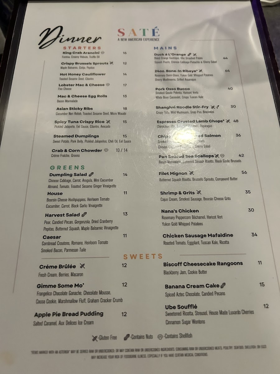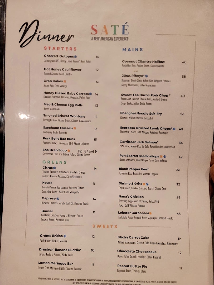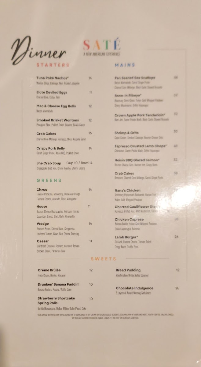 Introducing the menu at Saté: A New American Experience, diners are promised a culinary journey that blends creativity with flavor. Located at 694 Town Center Dr, Newport News, VA, this restaurant showcases a tantalizing array of starters, greens, and sweets, all designed to surprise and delight.